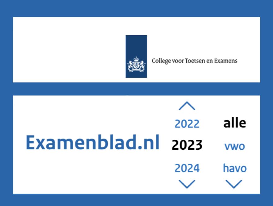 Via AlleExamens staan alle examens vanaf 1999 op een rij en kun je gericht zoeken op onderwerp door te zoeken in alle examens tegelijk. Alles is gratis en zonder inloggen te bekijken.