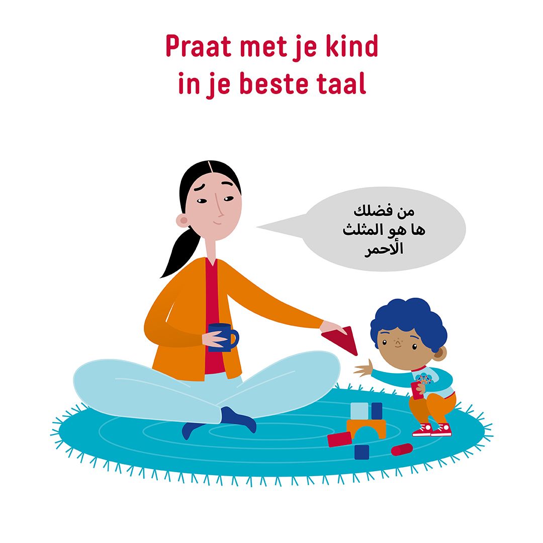 Praat met je kind in de taal die je zelf het beste spreekt. Het is niet erg als je daarbij een woord uit een andere taal gebruikt. Herhaal woorden en gebruik verschillende woorden. Zo leert je kind de taal het beste.