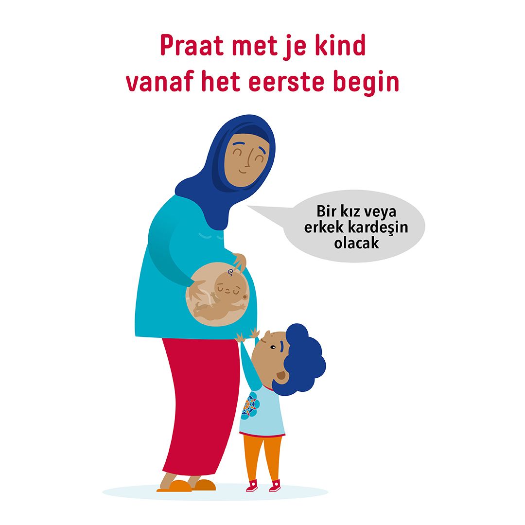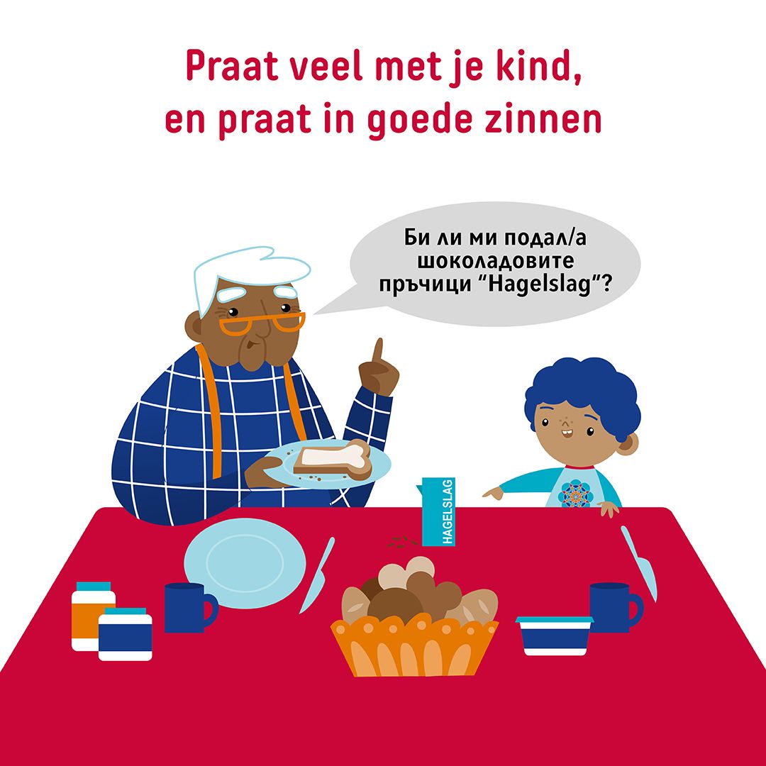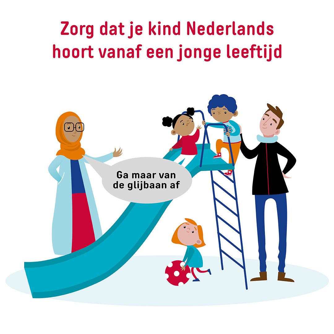 Praat met je kind in je beste taal. Deze taalbasis helpt bij het leren van het Nederlands. Het is goed als je kind vanaf jonge leeftijd het Nederlands hoort. Bezoek daarvoor met je kind plekken waar veel Nederlands wordt gesproken.